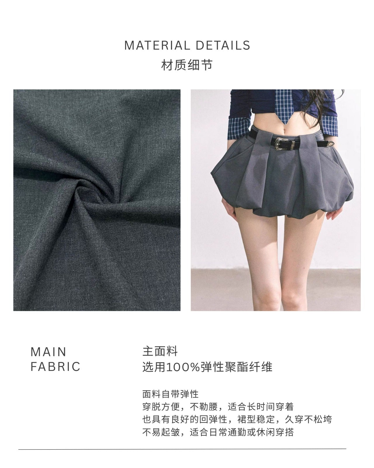 - 腰头部分叠加了金属扣腰带 可自行调节